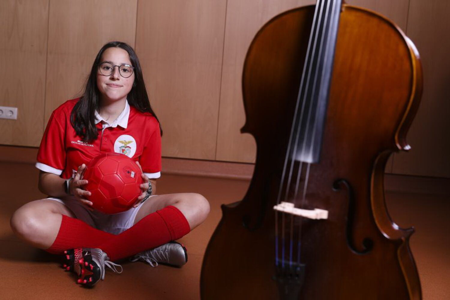 Helena Duarte tem 14 anos, acumula a prática do futebol na escola de formação do Benfica com a aprendizagem do violoncelo, ambas em Vila Nova de Gaia, por recusar-se a ficar em casa a ver televisão ou o telemóvel.