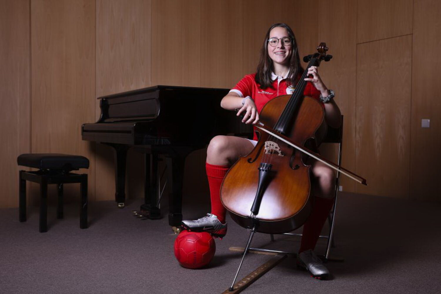 O professor de violoncelo, João Costa, ensina-lhe o dedilhar no instrumento, mas também observa uma lógica que aproxima duas realidades que se tocam no objetivo: "do contributo do futebol para a música, consigo ver, enquanto ela tiver uma atitude saudável, o trabalho de equipa".
