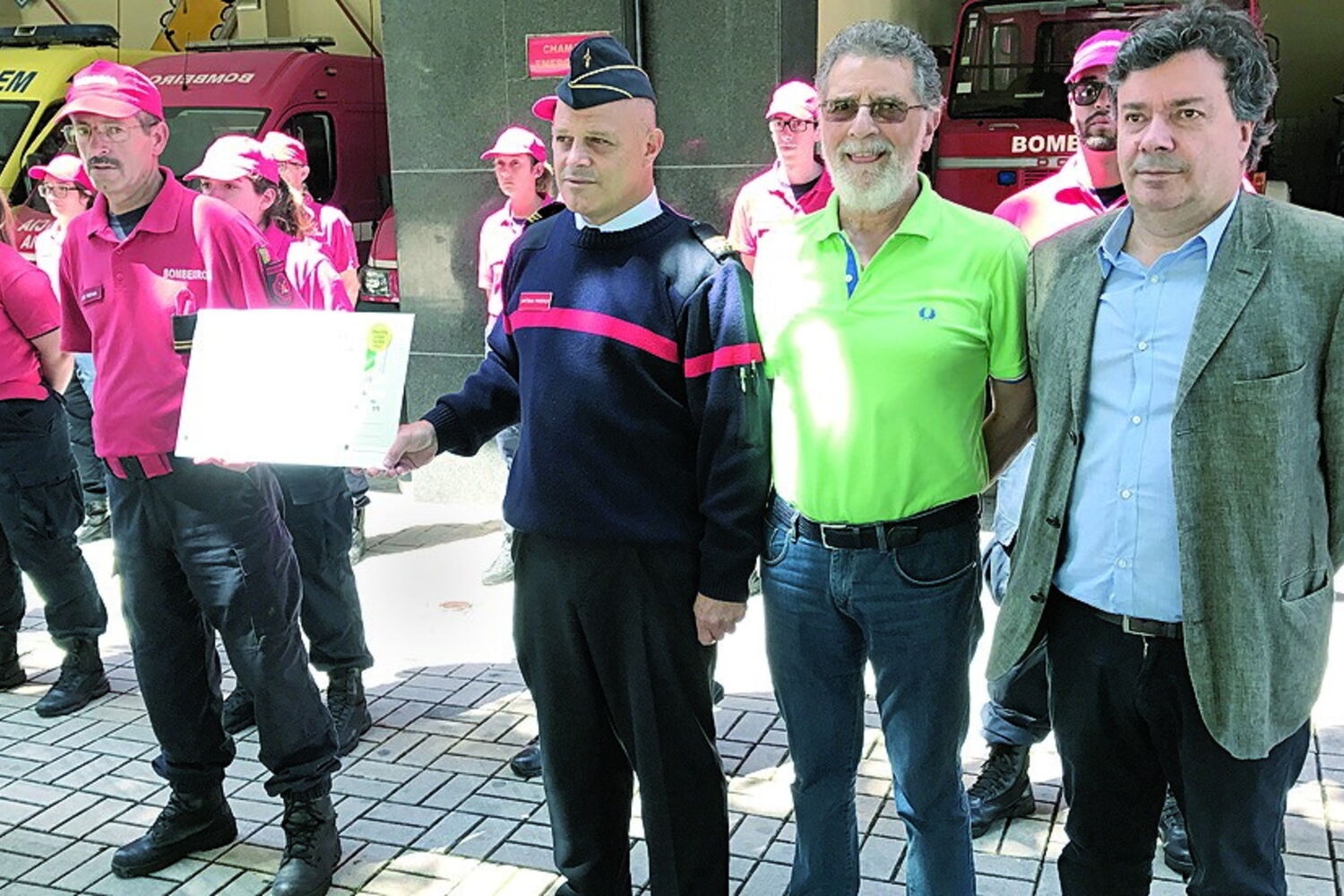 Resgataram todos os moradores de um edifício em chamas. "O dinheiro [mil euros] será aplicado na aquisição de equipamento de proteção individual e é sempre bem-vindo, porque é deste tipo de ajuda que precisamos", afirmou o segundo comandante da corporação.