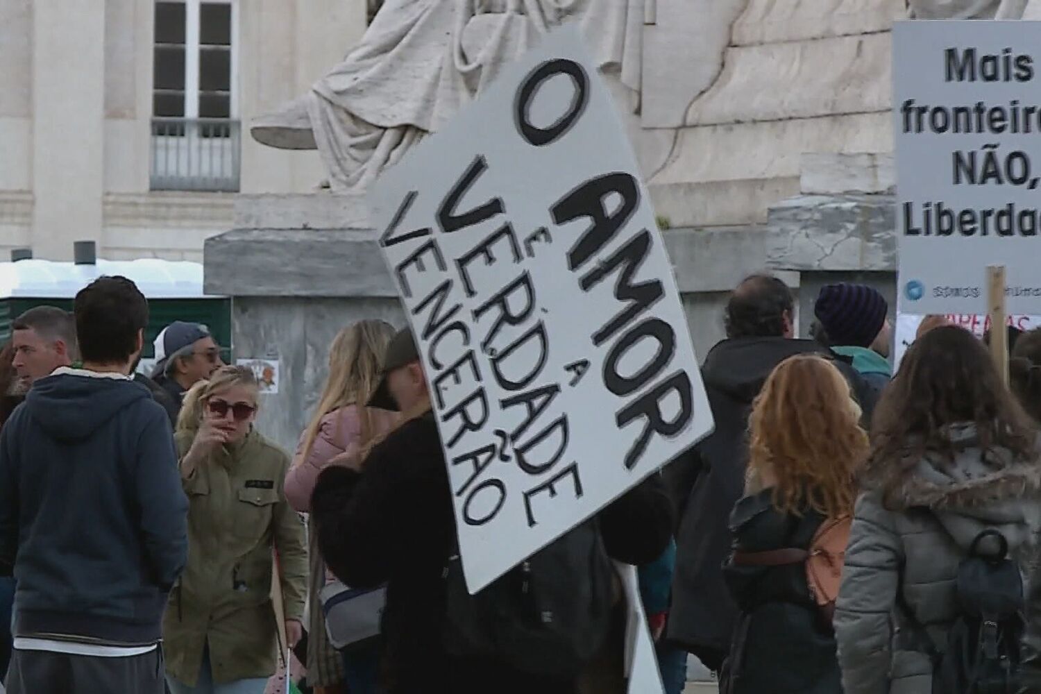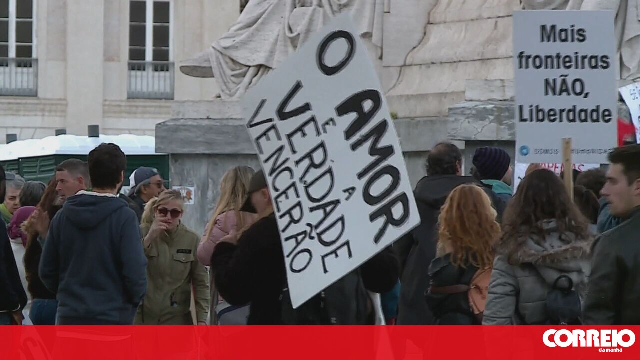 A grande maioria dos manifestantes não usou máscara nem manteve distância de segurança. Viram-se cartazes com mensagens como: ‘Devolvam a liberdade’, ‘deixem as crianças viver’, ‘Costa, Marcelo e DGS: vemo-nos em Nuremberga’, ‘o vírus são os media’ e ‘Covid-1984’.