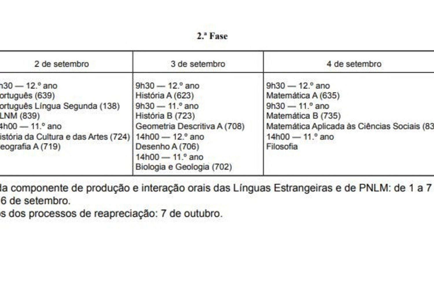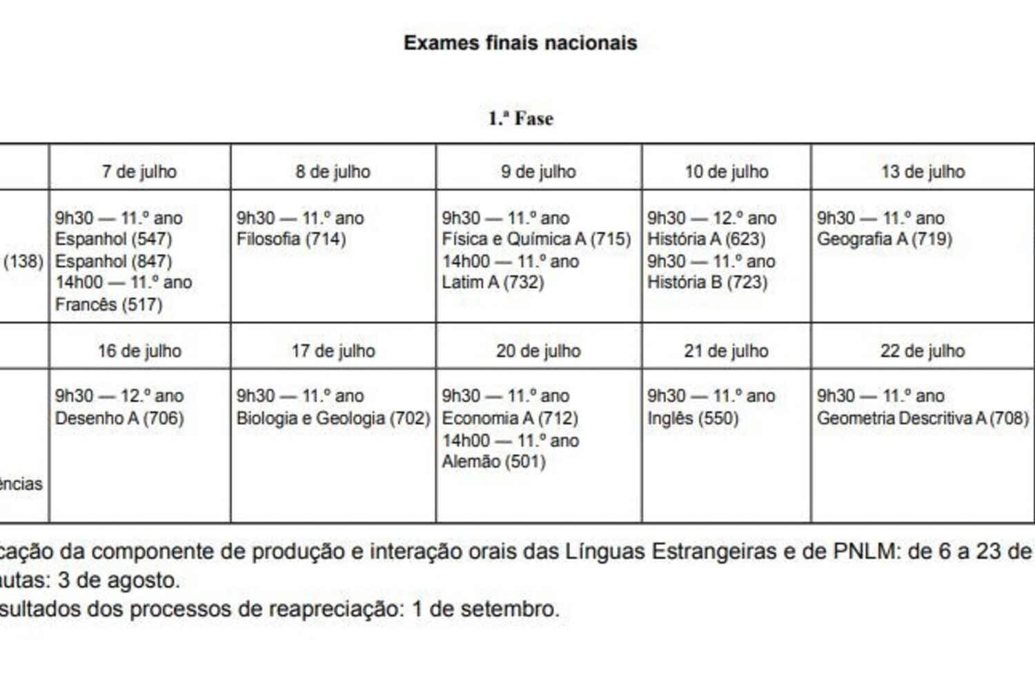 De acordo com o Decreto-Lei, as duas fases dos exames nacionais estão distribuídas da seguinte forma: