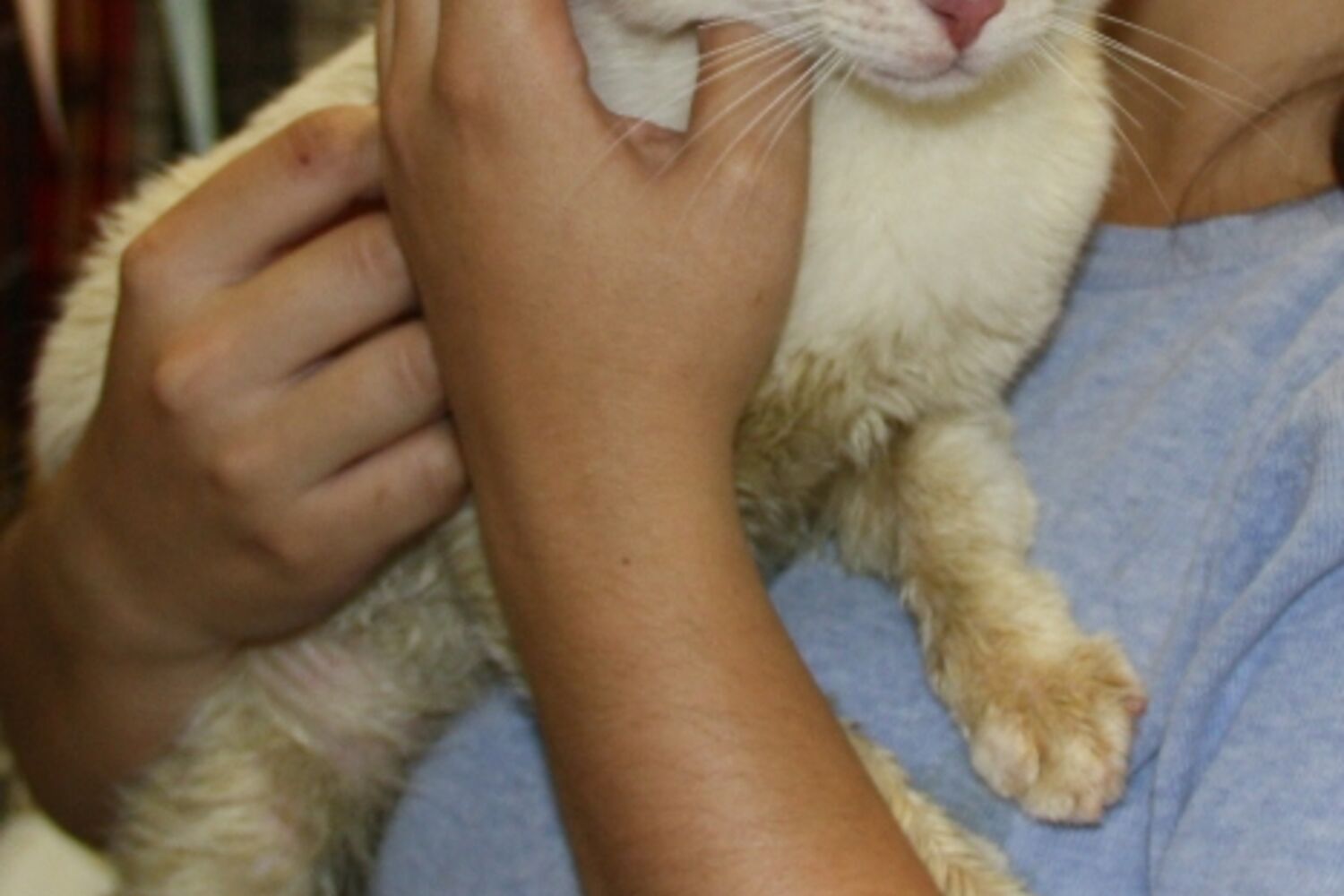 Inicialmente, eram cinco crias. Resta uma sobrevivente, pois um dos gatos já tinha sido dado e outro desapareceu há dois meses.