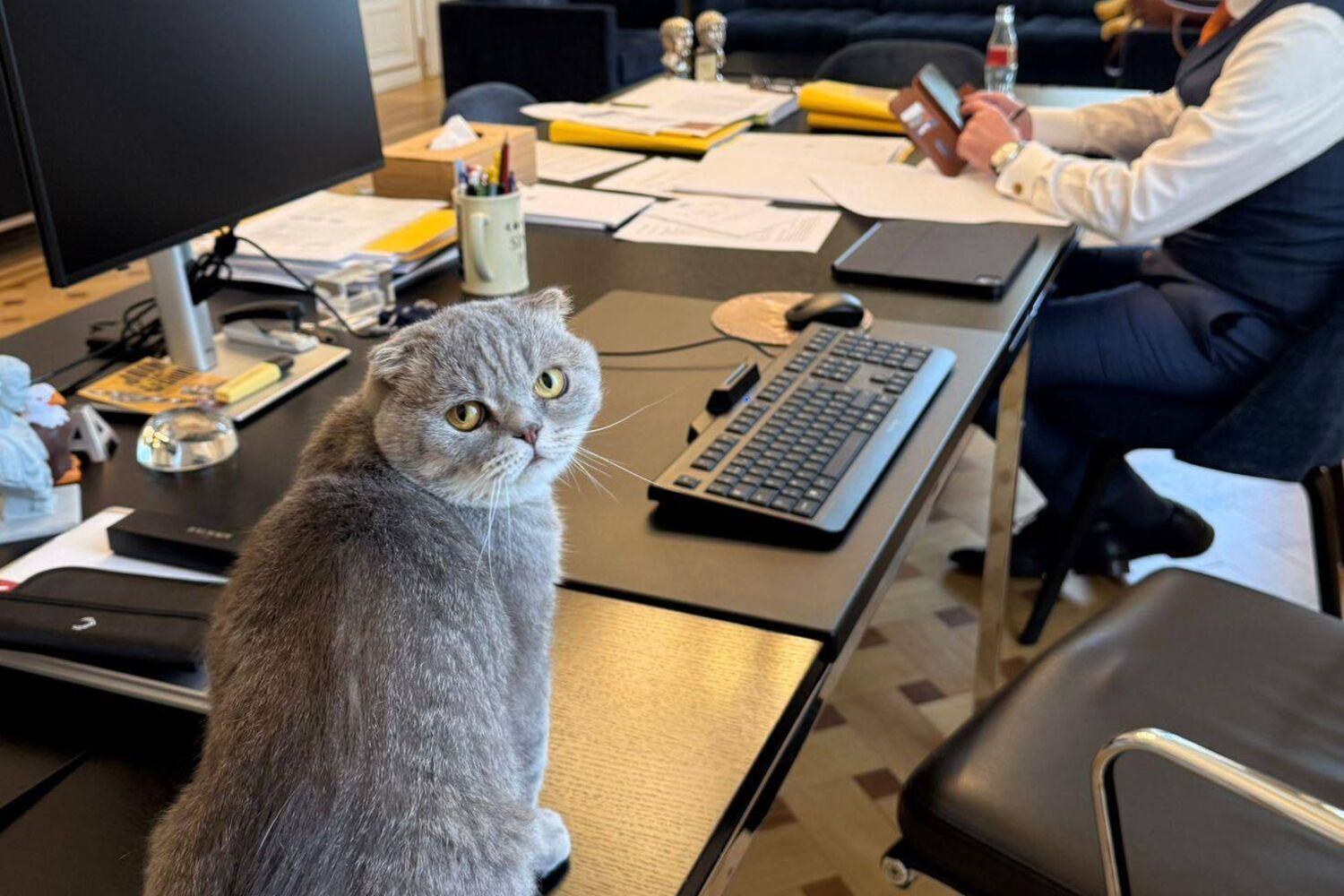Maximus foi adotado num abrigo e é um gato de raça Scottish Fold, cinzento e de orelhas dobradas, apresentado oficialmente em agosto como o novo residente da sede do governo, na Rue de la Loi 16, em Bruxelas. Desde então, tornou-se presença assídua nas publicações do primeiro-ministro: aparece a dormir no escritório, a ser empurrado num carrinho, estendido na sala de reuniões ou a observar, do parapeito, o movimento político lá em baixo. A particularidade? As fotos vêm acompanhadas de balões de fala em tom irónico, sempre em flamengo, sobre temas bem reais como greves, cortes orçamentais, debates intermináveis e até o novo serviço militar voluntário para jovens.