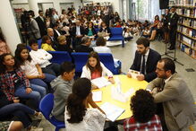 "Hoje é uma aula diferente. Vamos falar do planeta Terra e como temos de o preservar", explicou Tiago Brandão Rodrigues, que ouviu as conclusões e preocupações que os alunos do 1º, 2º e 3º ciclos e do ensino secundário mostraram em relação a estas temáticas. "Os Objetivos de Desenvolvimento Sustentável lançam-nos o desafio de pensar numa Educação de qualidade para todos. Temos que combater as desigualdades para que a Educação possa ser o verdadeiro inovador social que todos queremos", adiantou o ministro.