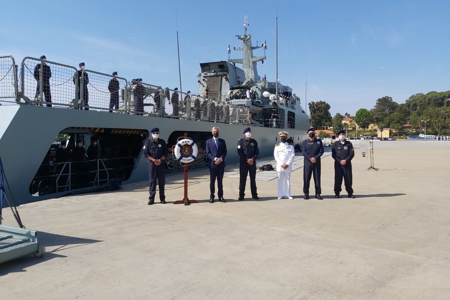O navio da Marinha foi recebido pelo ministro da Defesa Nacional, João Gomes Cravinho, e pelo Comandante Naval, vice-almirante Alberto Silvestre Correia.