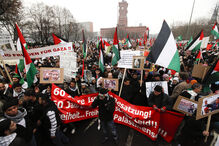 Os manifestantes juntaram-se no Largo de Camões pelas 15h00 e, ao som de palavras de ordem como "a Palestina vencerá" e "o que é que nós queremos no parlamento? Boicote, sanções e desinvestimento", estão a dirigir-se para a Ribeira das Naus.