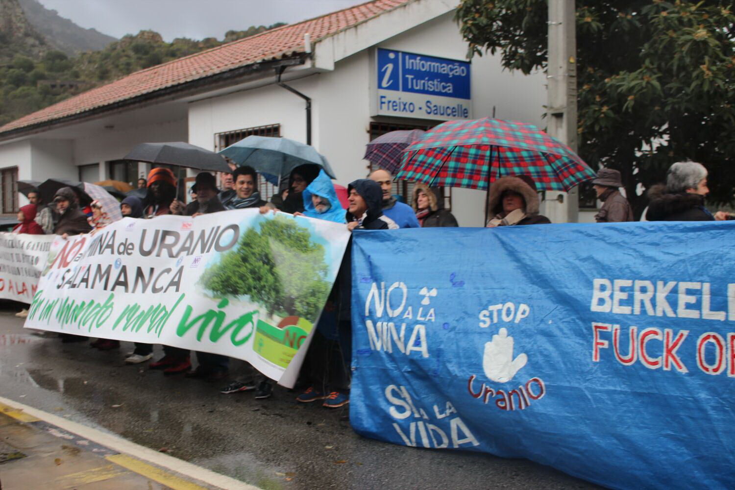 Cerca de duas centenas de portugueses e espanhóis formaram ontem à tarde um cordão humano que uniu os dois países, na barragem de Saucelle, zona de fronteira com Freixo de Espada à Cinta, e pediram um "não definitivo" aos projetos de exploração de urânio a céu aberto na região de Salamanca, um deles em Retortillo, a 70 quilómetros do território nacional.