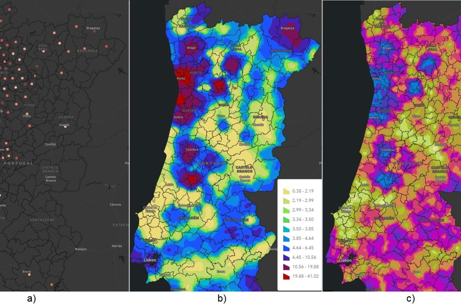 O mapa, que pode ajudar a entender a evolução da pandemia em Portugal, foi desenvolvido por uma equipa de investigadores em Geoestatística e Ciências Espaciais de Dados do CERENA - Centro de Recursos Naturais e Ambiente do Instituto Superior Técnico - com experiência substancial em projetos de Epidemiologia Ambiental.