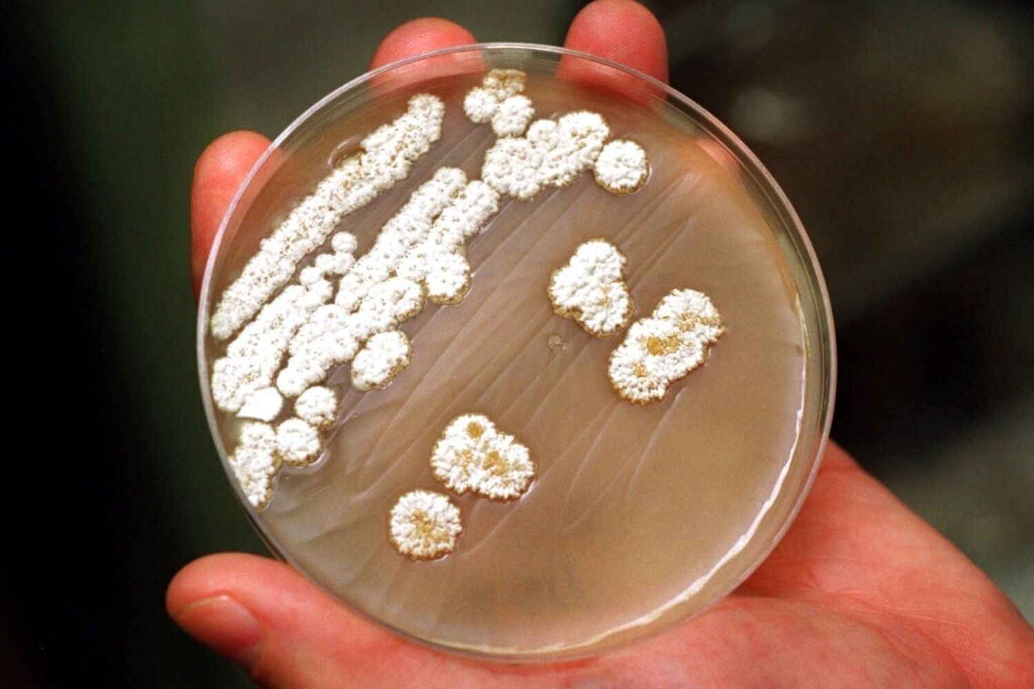 Passados seis meses, algumas colónias bacterianas produziram estruturas viscosas chamadas "biofilmes", que podem ser vistas a olho nu.