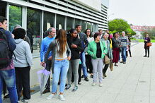 À porta da conservatória de Lisboa, juntaram-se hoje manhã dezenas de pessoas que aguardavam por uma senha para o pedido de nacionalidade. Algumas foram para a rua Rodrigo da Fonseca por volta da 01:00 de hoje, outras disseram que esta já era a terceira tentativa para conseguirem uma senha e outras chegaram mais tarde na expectativa de ainda conseguirem um lugar.