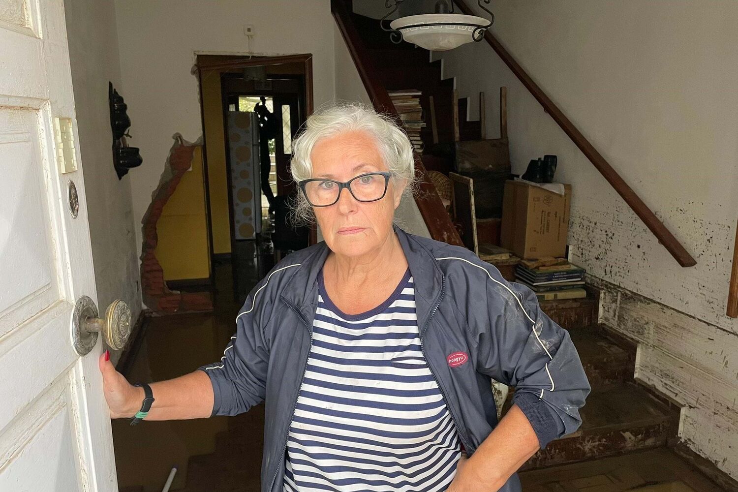 Interior de um prédio no Porto inundado