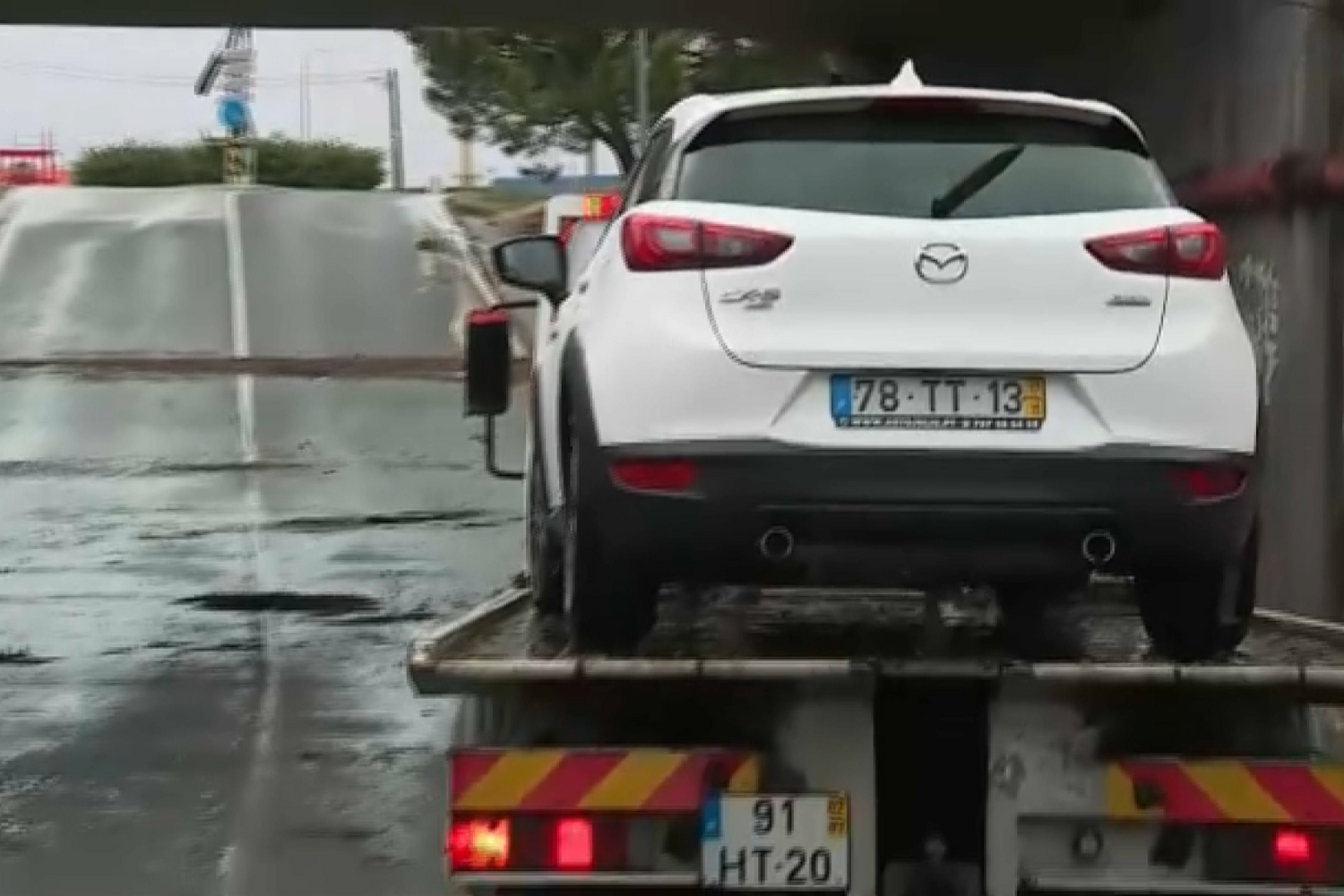 Também a estrada onde morreu um taxista em 2022 devido às cheias está novamente inundada.