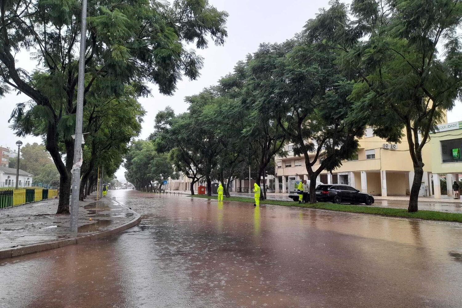 Estrada alagada em Carcavelos