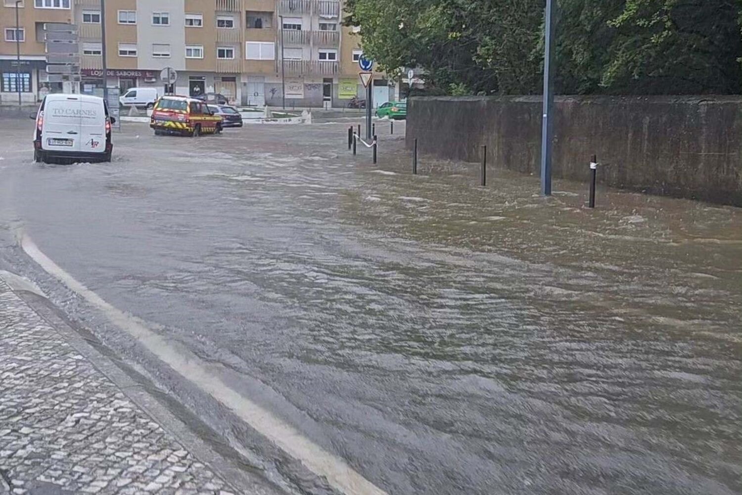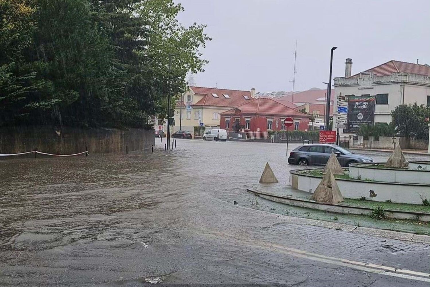 Rotunda das Bolas inundou, e está vedado o acesso do IC19 para lá.