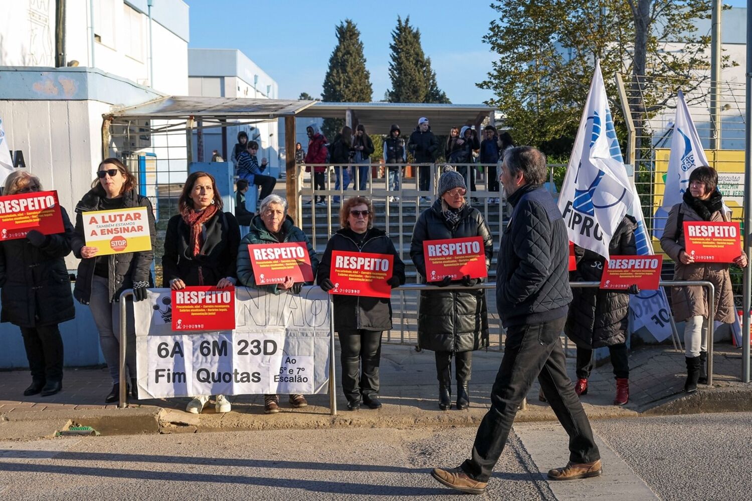 A greve de professores realizada esta quinta-feira em nove distritos de Coimbra para norte só não teve uma adesão perto dos 100% devido aos serviços mínimos (SM) que os sindicatos consideram ilegais (recorreram para a Relação) e que obrigam a dar 3 horas de aulas por turma.