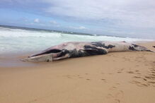 Na praia das Areias Brancas, em Santo André, deu à costa uma baleia comum, com 19 metros.