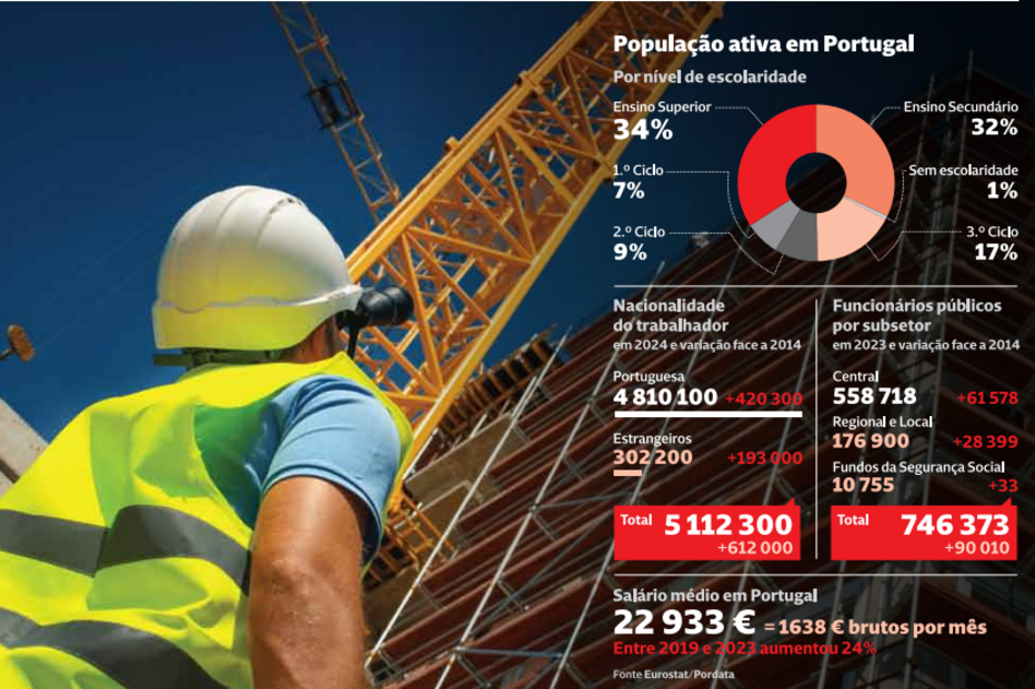 Há 5,1 milhões de trabalhadores no País. Destes, e pela pela primeira vez, a maior fatia tem o ensino superior (34%). No espaço de uma década, o número de licenciados subiu de pouco mais de um milhão para 1,7 milhões, o que representa um aumento de 61,8%. Essa realidade reflete-se também no contributo do grupo profissional dos especialistas das atividades intelectuais e científicas para o emprego total. São hoje 1,1 milhões de trabalhadores, mais 422 mil do que há 10 anos.