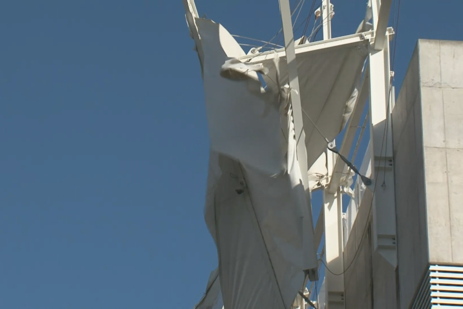 Estrutura ficou danificada devido a rajadas de vento superiores a 100 quilómetros por hora.
