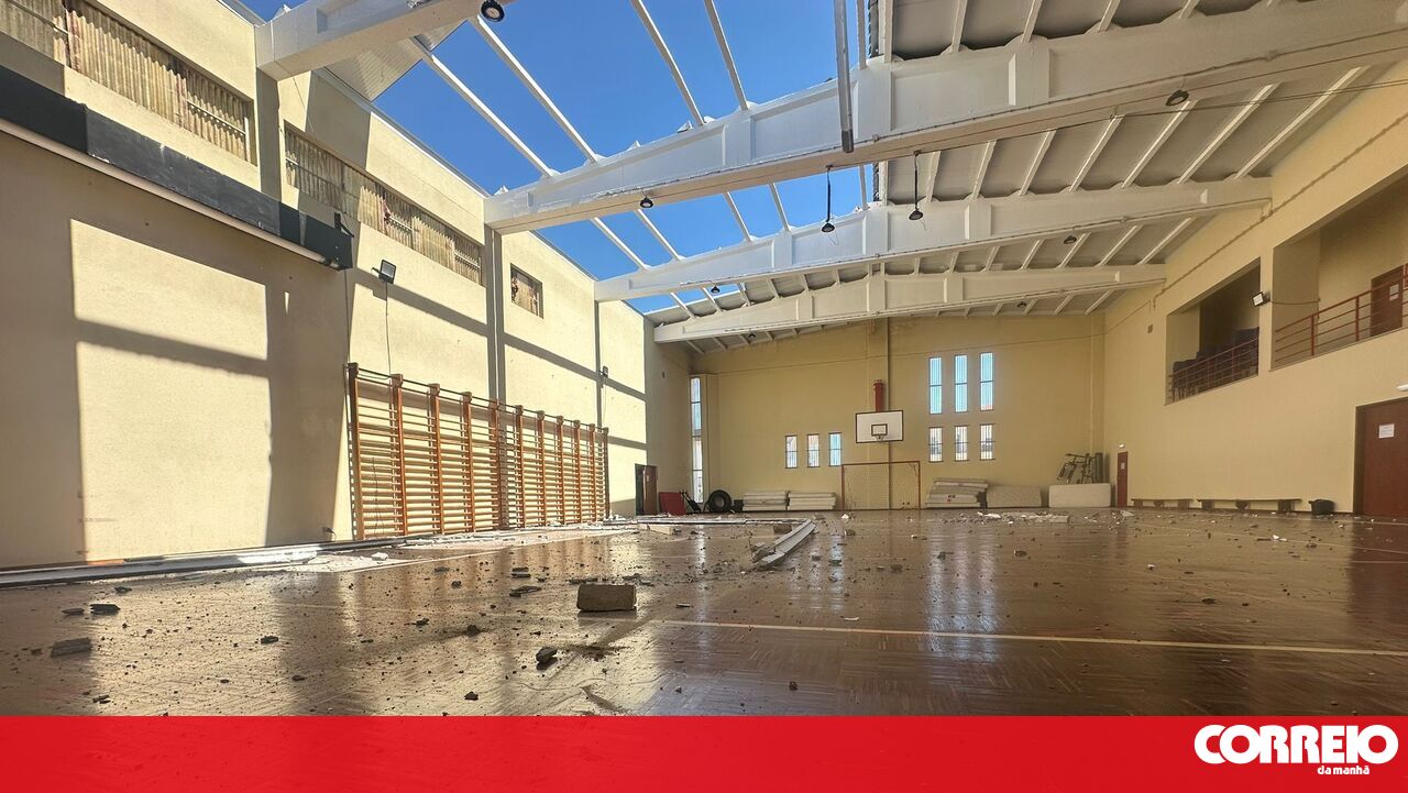 Um fenómeno de vento extremo provocou estragos numa parte do telhado do quartel dos Bombeiros de São Brás de Alportel.