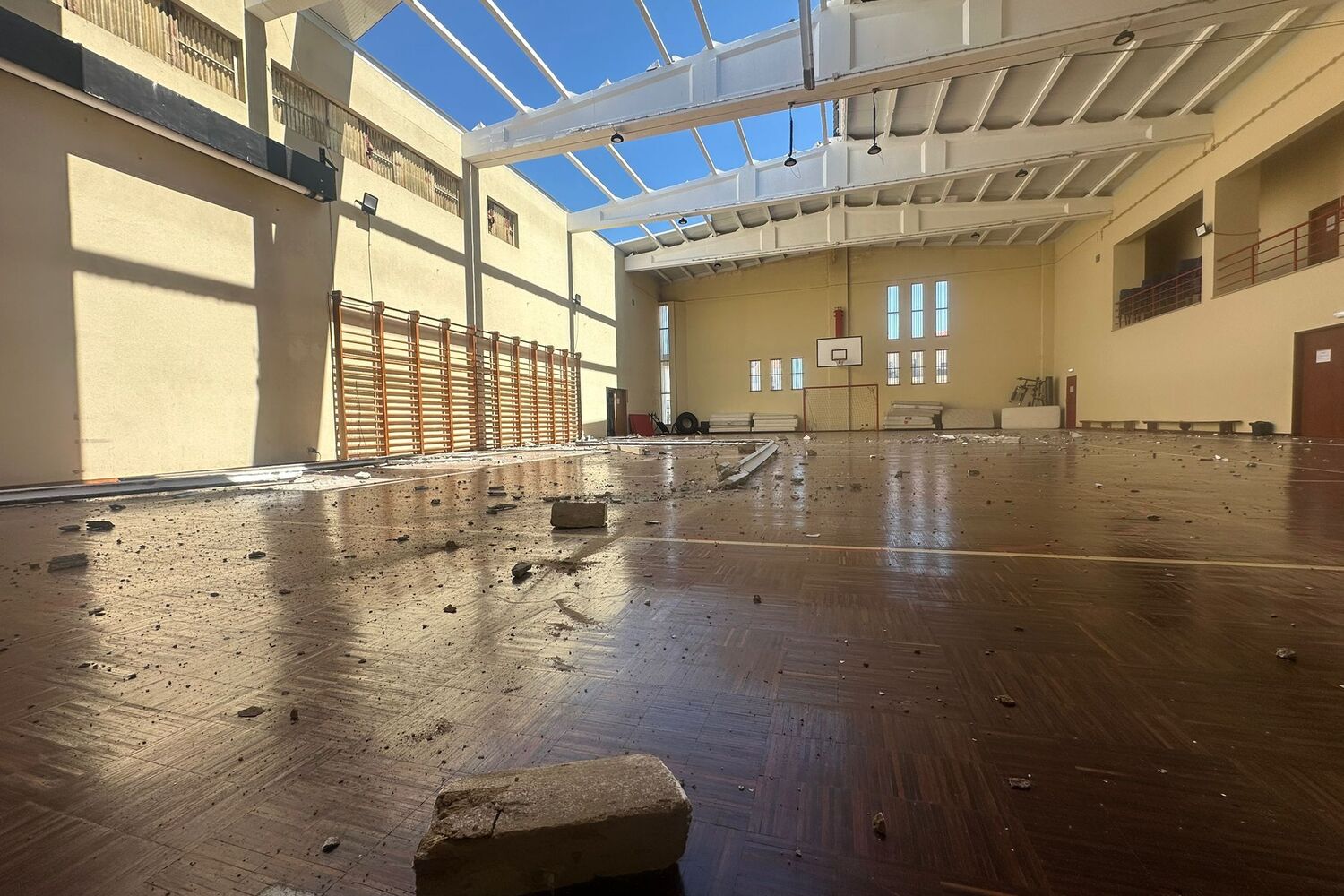 Algumas viaturas que estavam estacionadas nas imediações do quartel foram atingidas com alguns pedaços da estrutura e também sofreram danos.