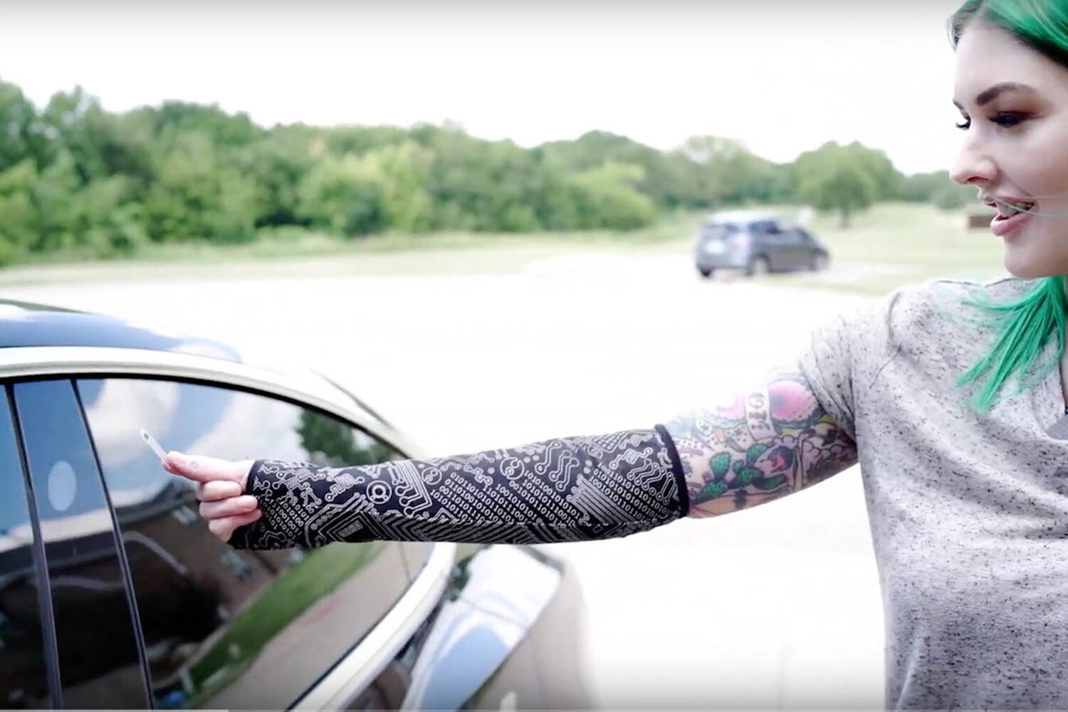 Amie DD é engenheira de software e proprietária de um Tesla Model 3. Até aqui tudo bem, a diferença é que Amie resolveu implantar no braço o chip RFID que tirou da chave do seu Tesla. O motivo, segundo ela, é muito simples: "quis mostrar que é possível!".