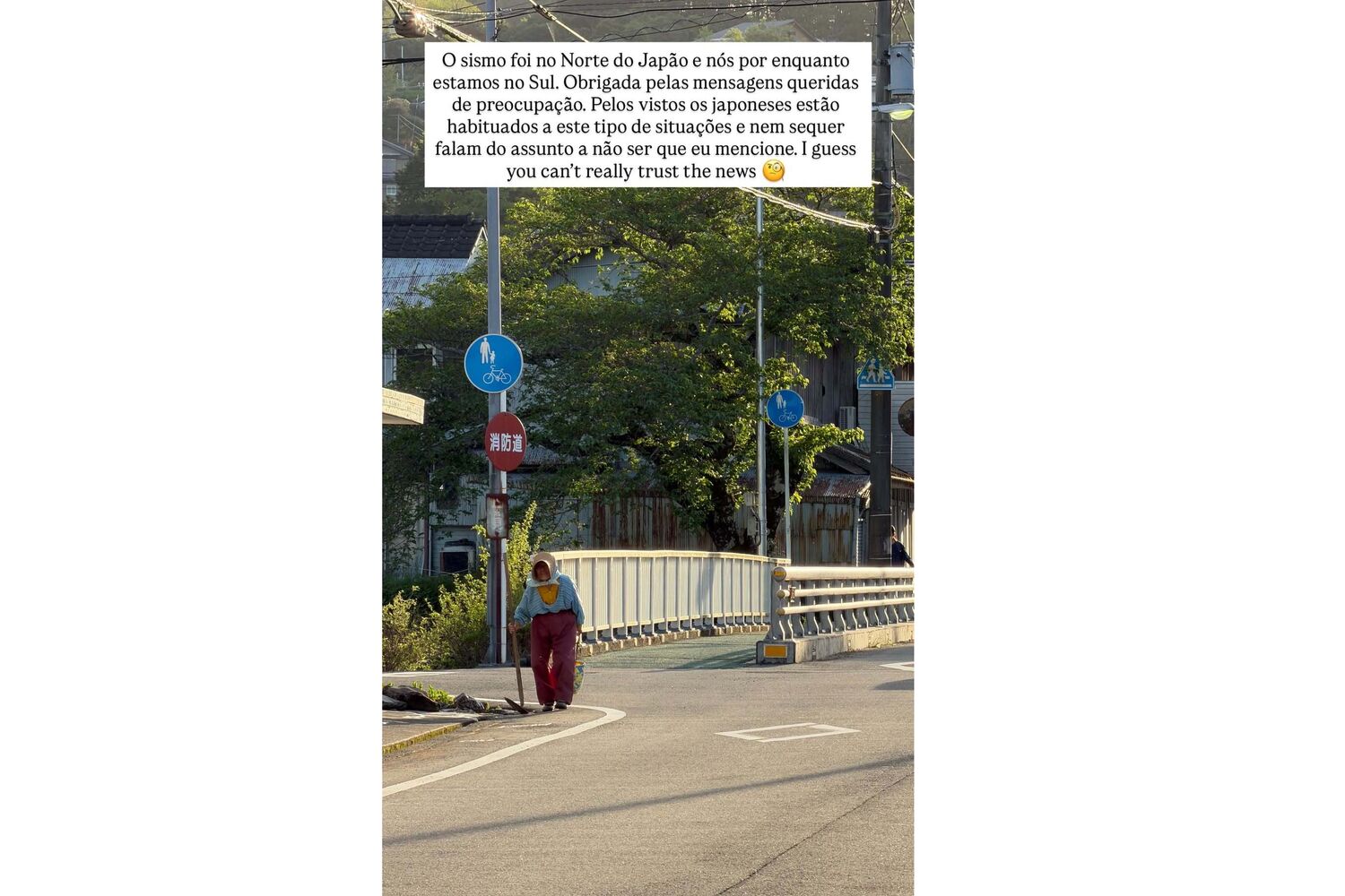 Numa publicação feita esta quarta-feira, 22 de abril, a atriz esclareceu que está em segurança. "O sismo foi no Norte do Japão e nós por enquanto estamos no Sul. Obrigada pelas mensagens queridas de preocupação", escreveu.