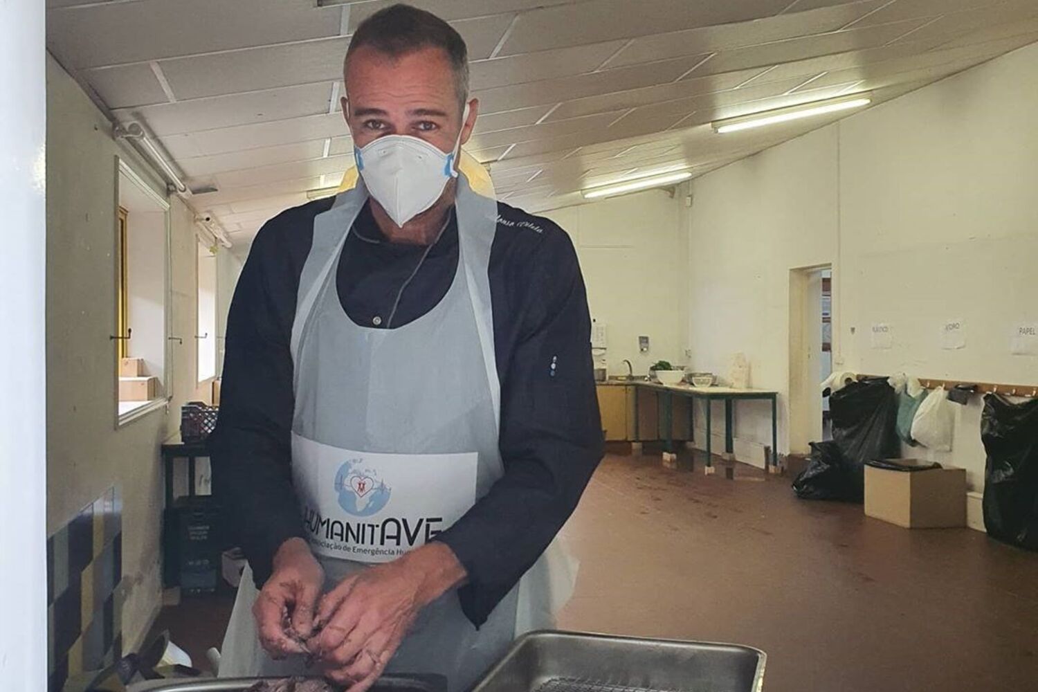 É em Vila Nova de Famalicão, uma das zonas mais fustigadas a norte do País, que o ator cozinha para centanas de sem-abrigos e carênciados.