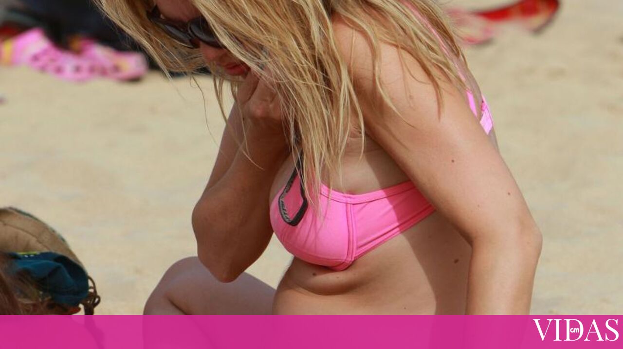 Alexandra Fernandes, ex-apresentadora e relações públicas, foi a banhos na praia da Rocha, Algarve, com o namorado, Tiago Guerreiro. A barriga da gravidez de quatro meses já não passa despercebida.