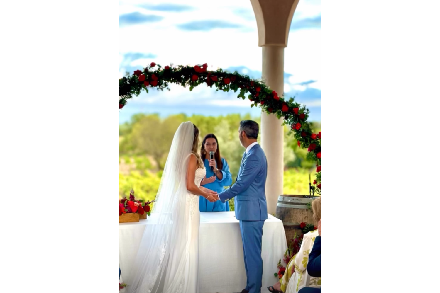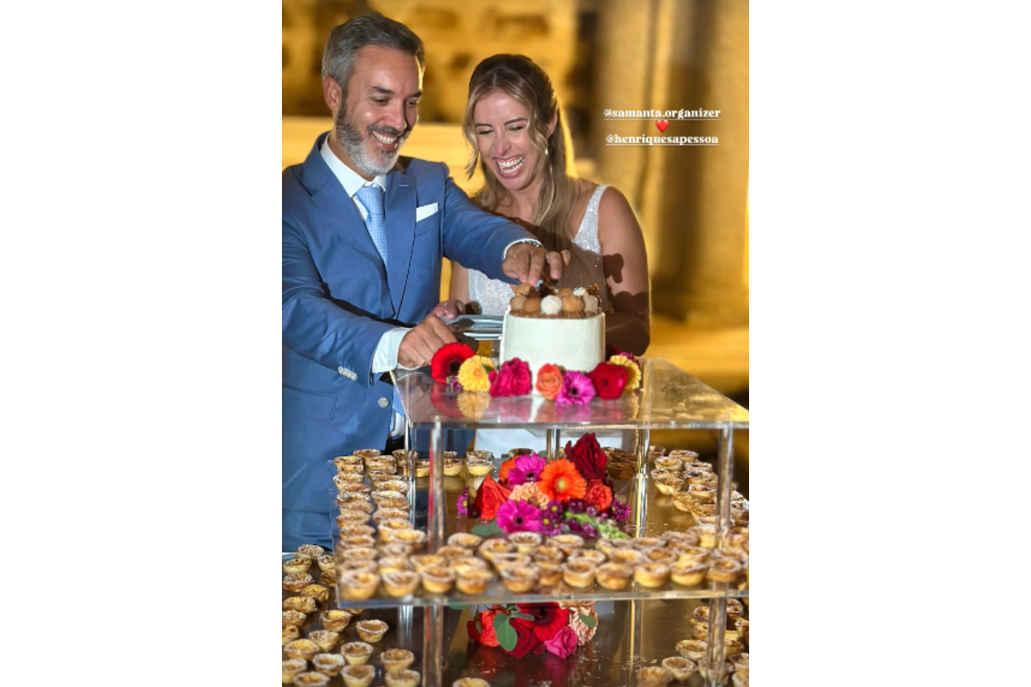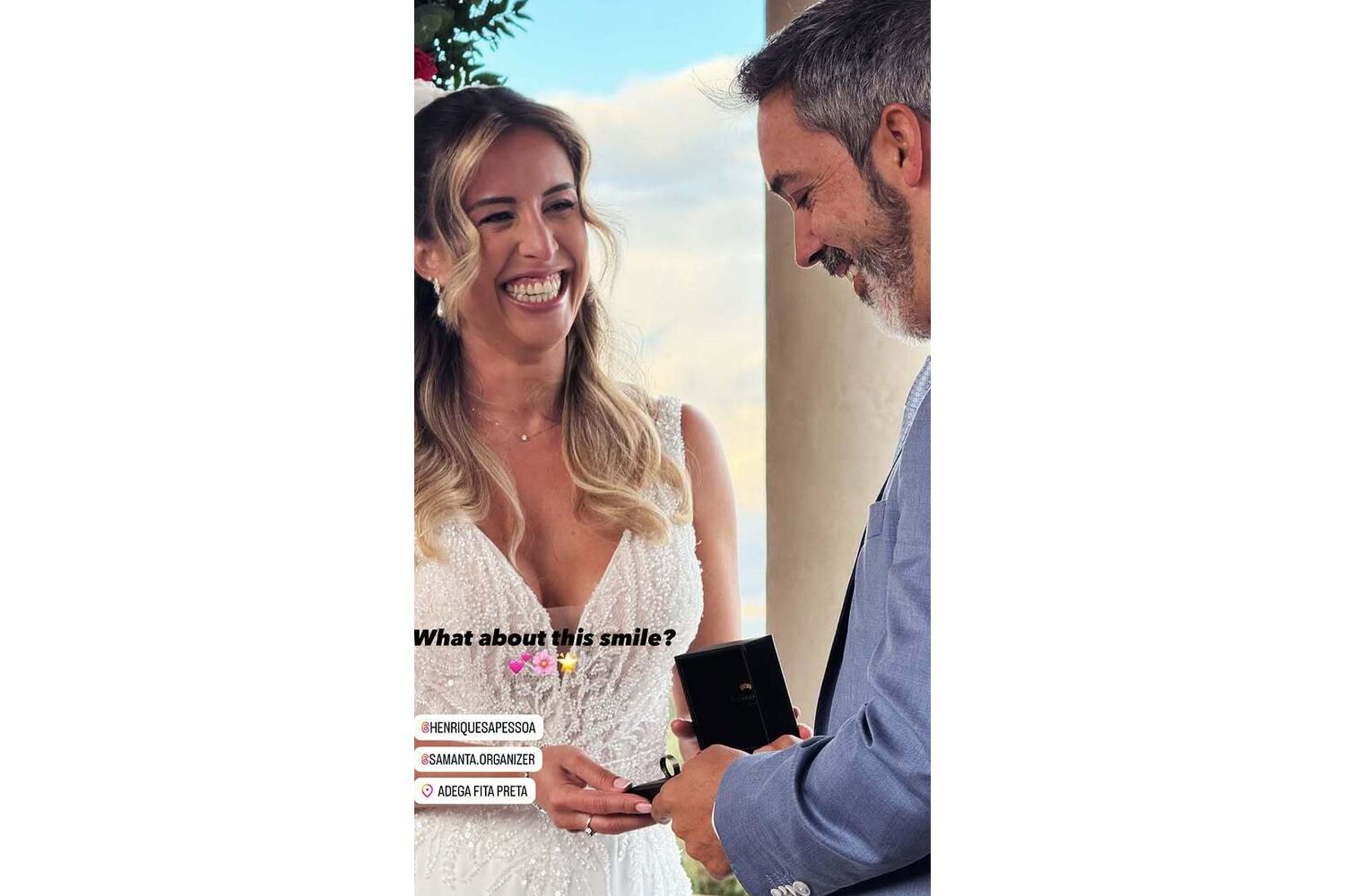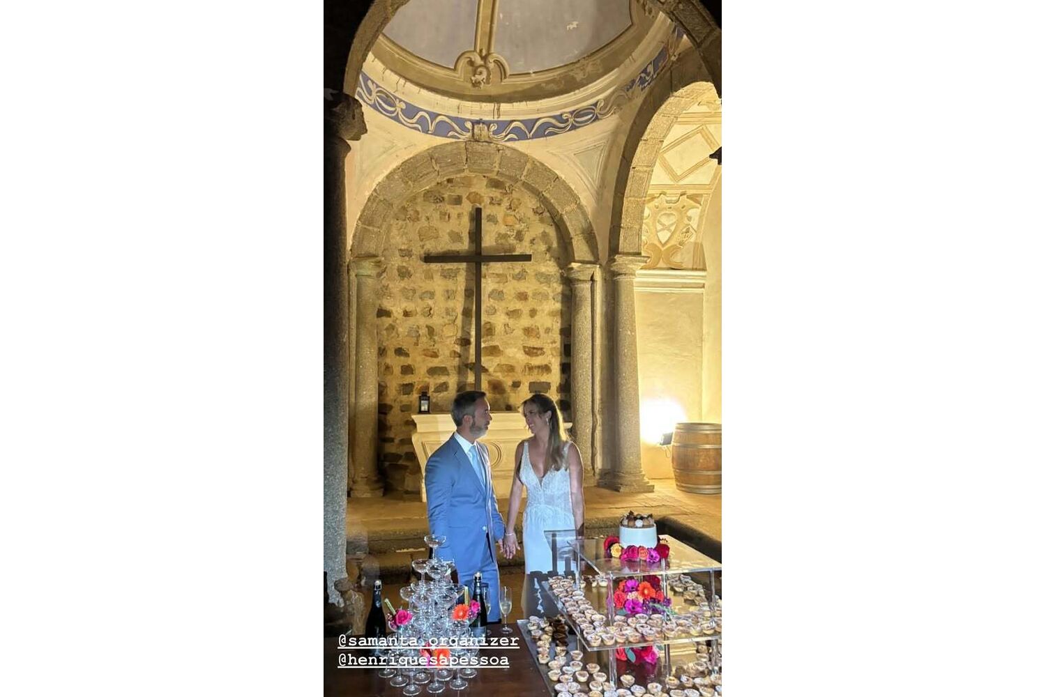A cerimónia aconteceu em Évora, na Adega Fita Preta, e contou com a presença de familiares e amigos próximos, que testemunharam o momento em que o casal eternizou a sua história de amor. Para o grande dia, Henrique Sá Pessoa, de 49 anos, optou por um arrojado fato azul claro, enquanto Samanta escolheu um vestido rendado, com brilhos na parte superior e simples na parte inferior.