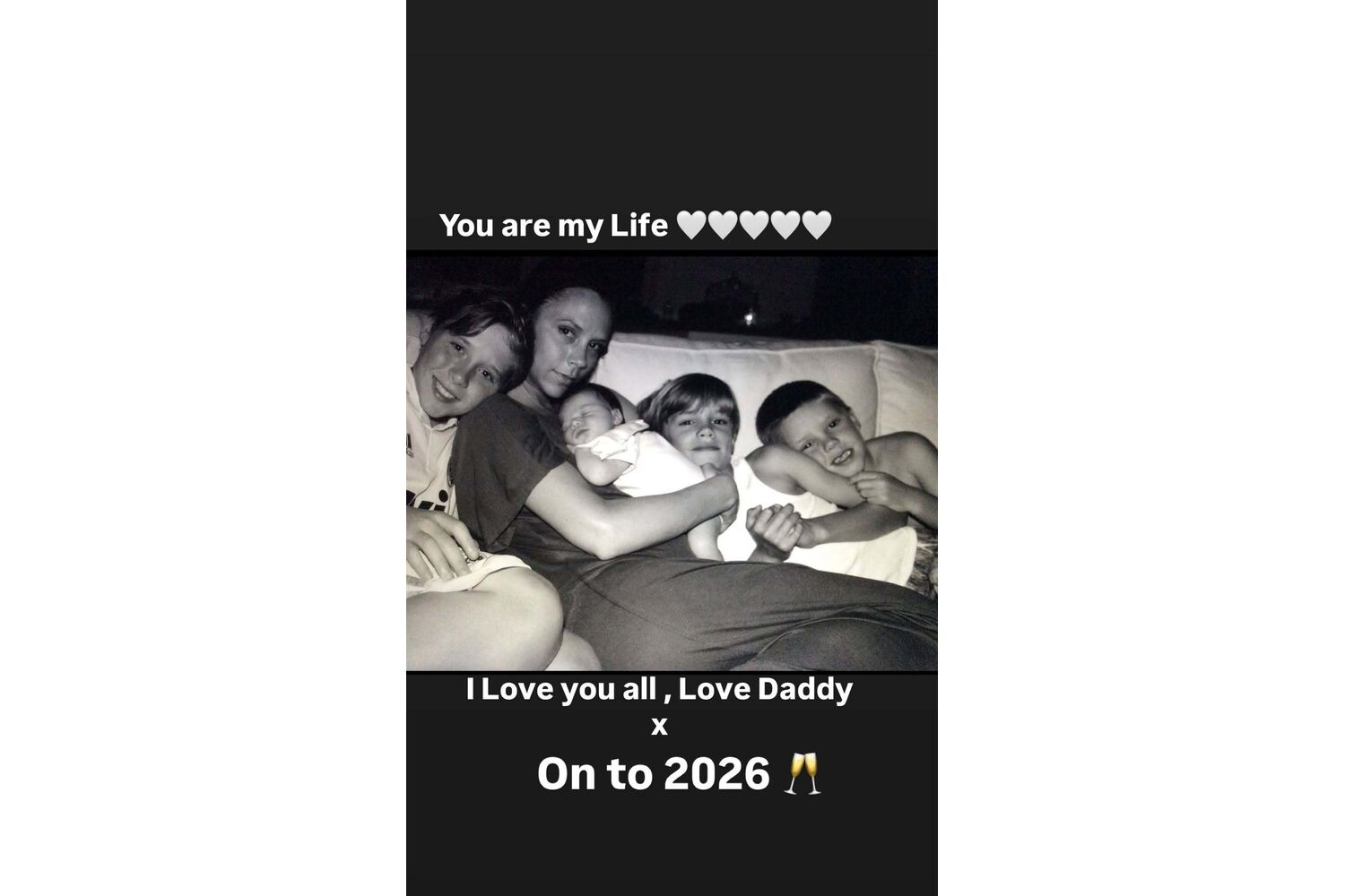 Agora, esta quarta-feira, 31 de dezembro, David Beckham partilhou nos 'stories' do Instagram várias fotografias antigas ao lado dos filhos e escreveu: "Tenho muita sorte pela minha família maravilhosa". Numa das imagens, em que surge apenas com Brooklyn, acrescentou: "Amo-vos muito a todos". Noutra fotografia, onde aparece Victoria Beckham com os filhos ainda pequenos, o antigo futebolista foi ainda mais emotivo: "Vocês são a minha vida".