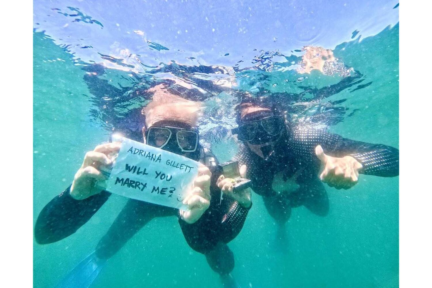 Quem anunciou o noivado e a forma como o pedido de casamento foi feito foi a própria noiva, Adriana Gillett, numa publicação no Instagram em que mostra o casal a mergulhar com tubarões baleia e o músico de 62 anos a segurar um cartaz que dizia: "Casas comigo?".