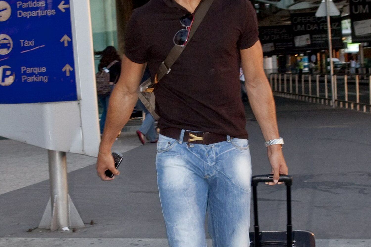 E foi em passo apressado e sempre em silêncio que Ronaldo percorreu a entrada do aeroporto. O avançado do Real Madrid seguiu de imediato para um veículo com motorista que o aguardava, rodeado dos cunhados, José Pereira e Edgar, e de outro amigo.