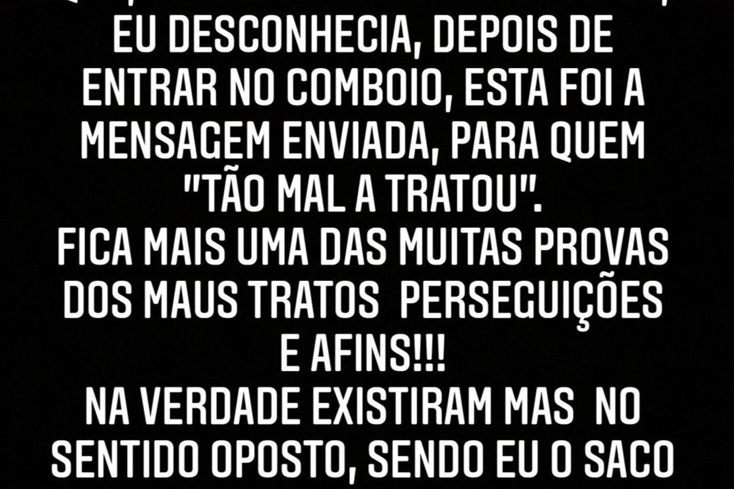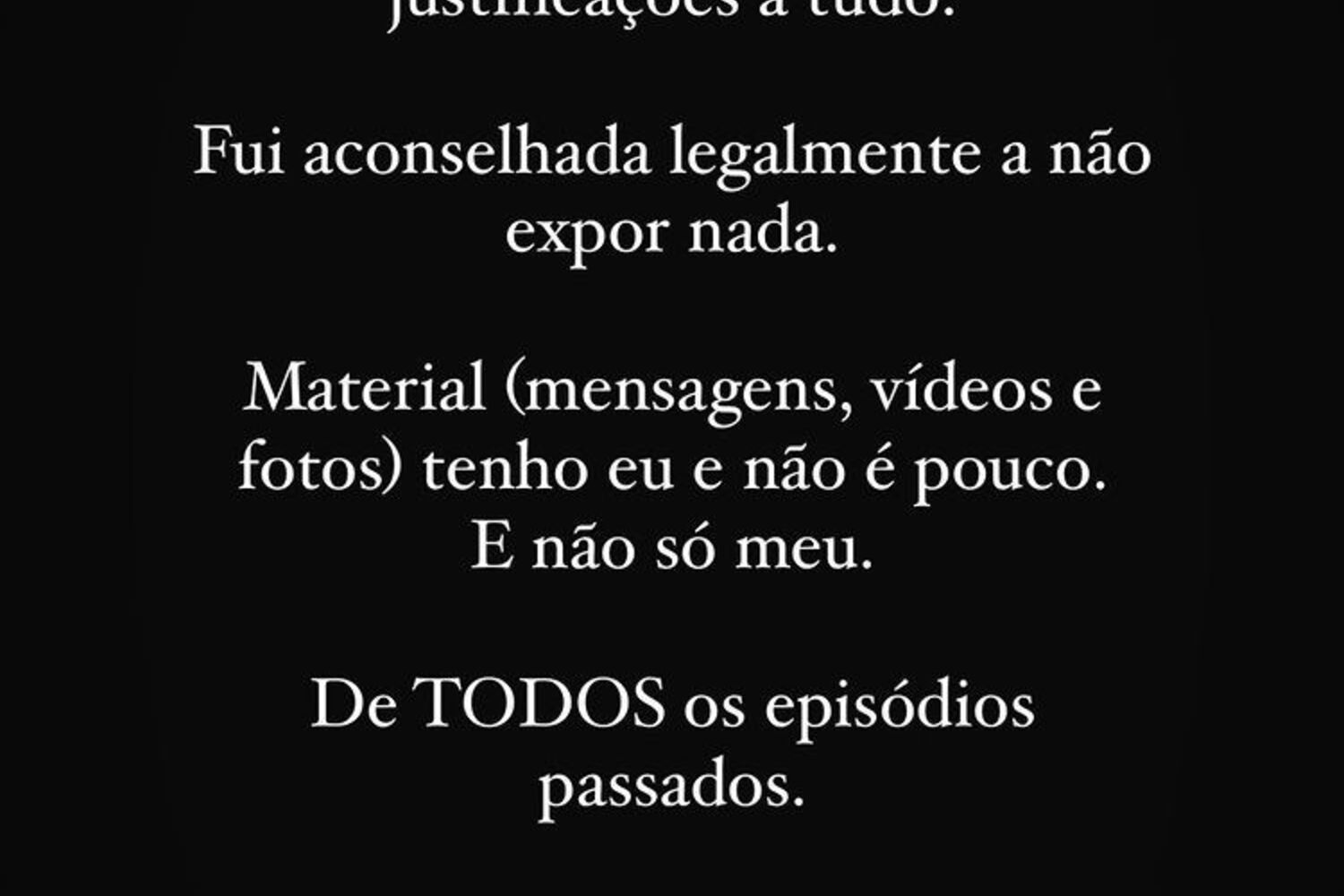 "Hoje coloquei um ponto final naquilo que já devia ter feito há muito tempo. Como vocês sabem a minha 'relação' sofria grandes percalços e era tudo menos uma relação normal. Viver numa relação de ameaças e de mentiras estava a deixar-me de rastos", começou por escrever.