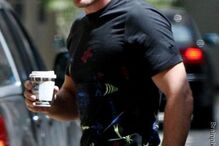 De pijama à porta de casa, em Londres, o cineasta britânico foi visto a despedir-se de uma modelo, 13 anos mais nova do que ele