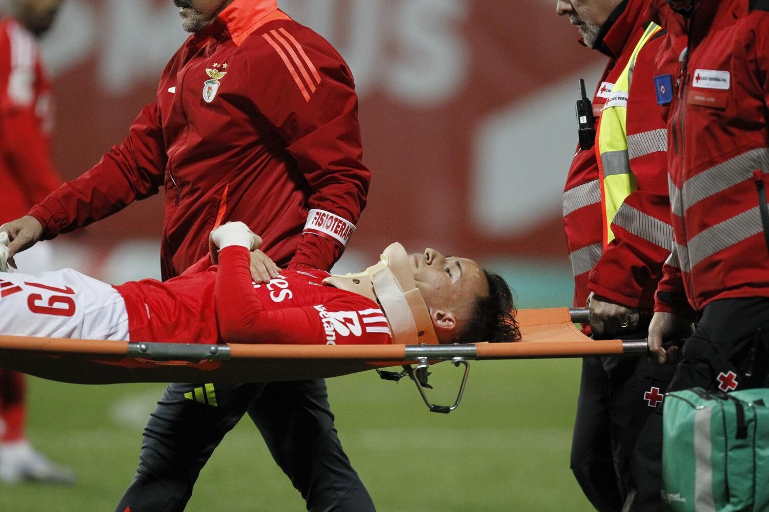 Hugo Félix não ganhou para o susto. O irmão de João Félix perdeu os sentidos depois de bater de cabeça contra Lucas Araújo da equipa do Portimonense, este domingo (9 de março). O futebolista saiu de maca, protegido com um colar cervical, e foi transportado para o hospital onde fez exames de despiste apenas por precaução.