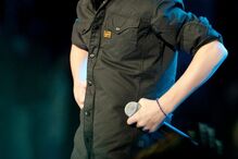 Com uma t-shirt provocante (com uma mulher nua a fumar), que já havia dado nas vistas no aeroporto de Los Angeles, na Califórnia, o jovem artista, que viajou a bordo de um avião comercial, foi então conduzido para o seu hotel, não numa limusina, mas numa vulgar carrinha de passageiros.