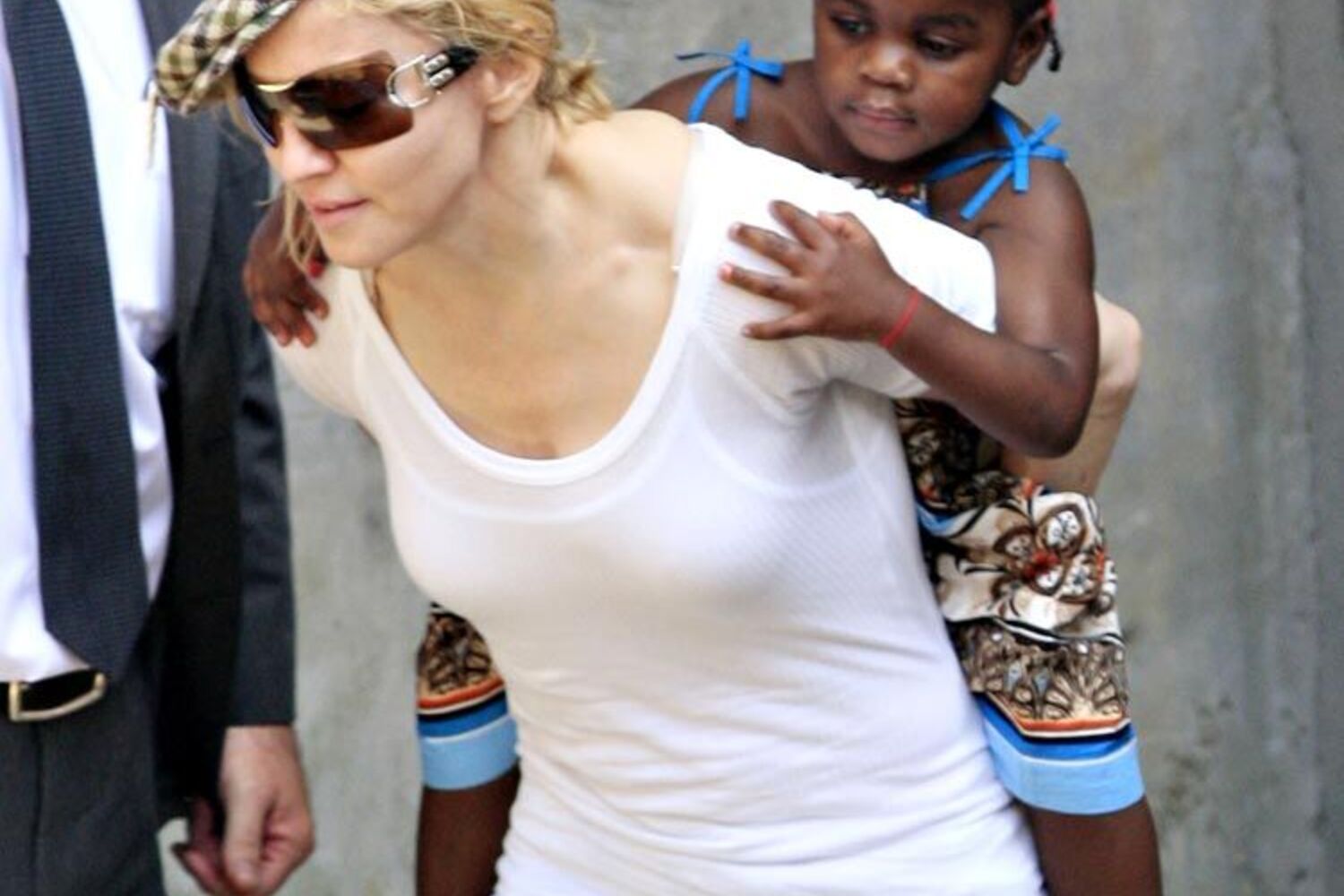 Algum espanto e dupla surpresa. Aparentemente sem quaisquer problemas em ser fotografada, Madonna apareceu em público com a nova filha adoptiva do Malawi, a pequena Mercy James, de quatro anos, feliz da vida com a criança às cavalitas a caminho do centro de Cabala no centro de Londres. Dupla surpresa, porque além da cantora pop americana e dos filhos, surgiu também no local o seu ex-marido, o cineasta britânico Guy Ritchie.