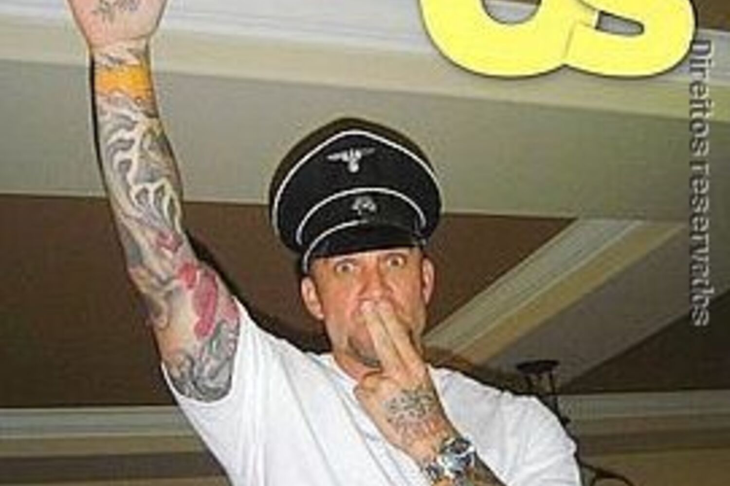 Jesse James, marido de Sandra Bullock, aparece a fazer a saudação nazi em fotos publicadas ontem na Imprensa estrangeira.
