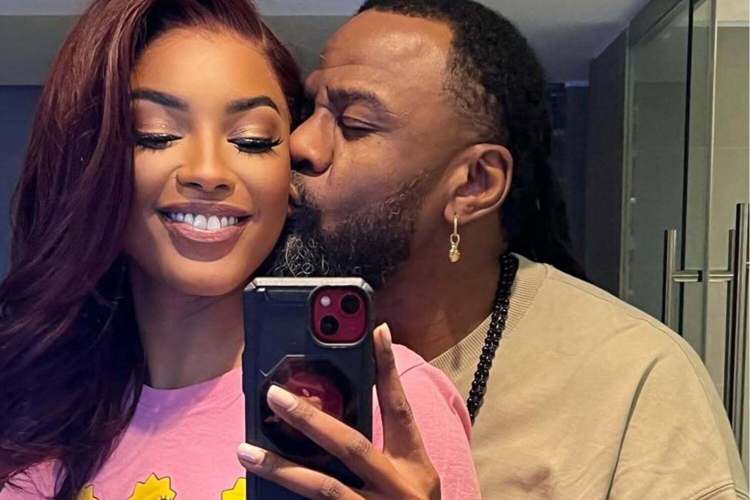 No dia do chá do bebé, C4 Pedro, que normalmente adota uma postura discreta, partilhou um vídeo onde se vê a chegar a casa, depois de ter feito uma viagem, e dá um beijo cúmplice a Sharam Diniz. Na legenda escreveu: "O pai da criança chegou".