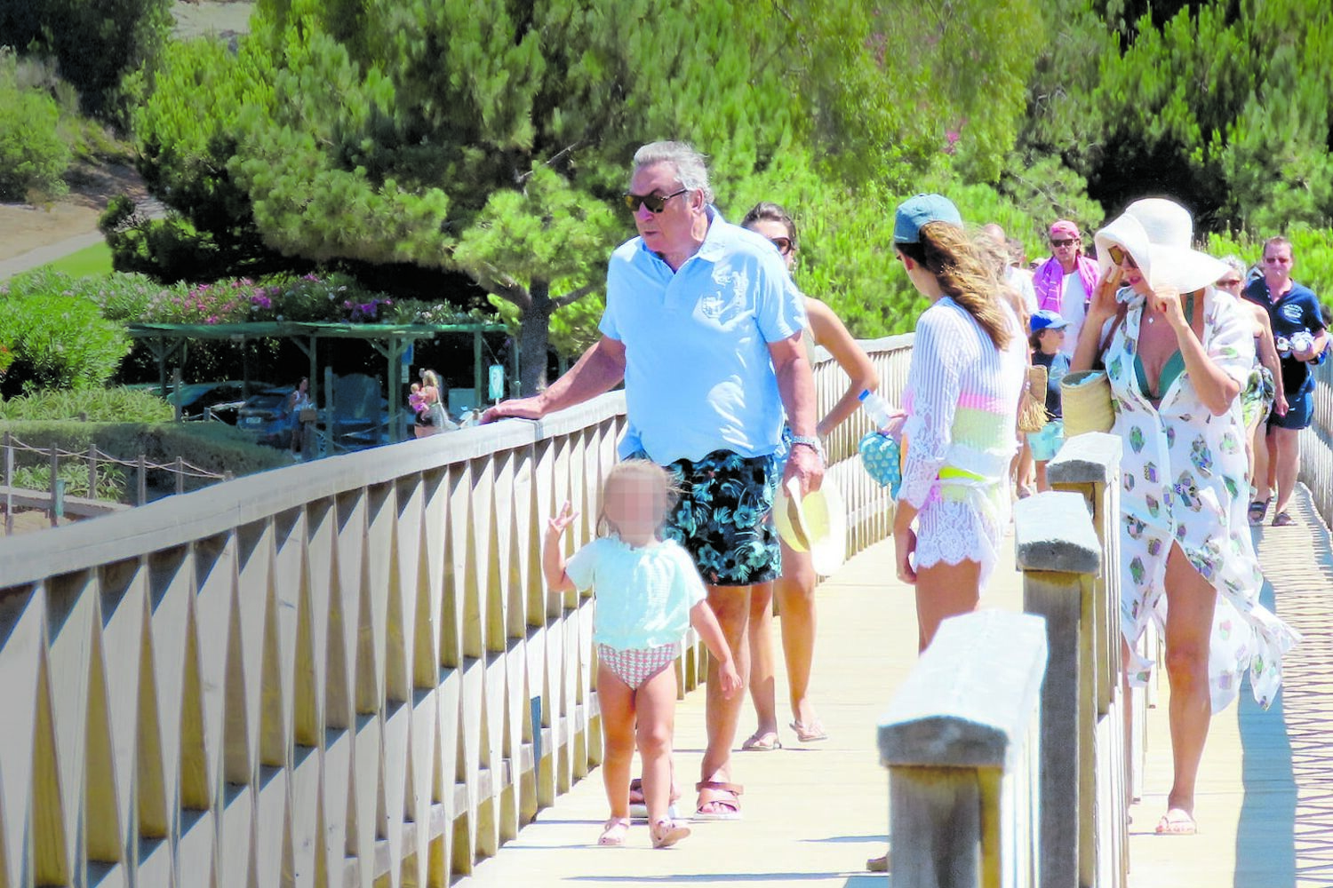 Dono dos hotéis Altis e a mulher de férias com os netos na praia do Gigi.