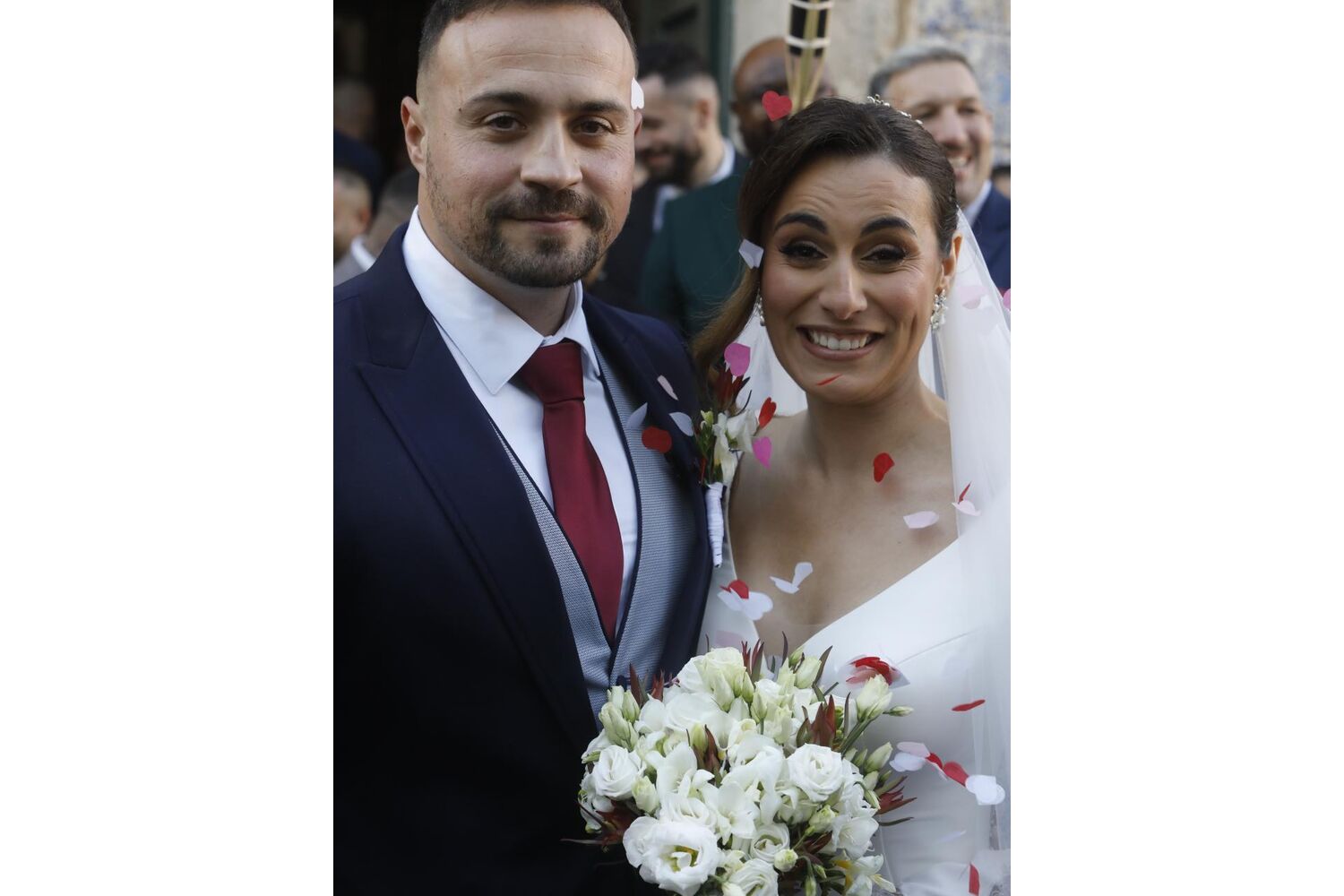 Rita Matias, deputada do Chega, deu este domingo o nó com Hélio Filipe, segurança de André Ventura, na Igreja do Seixal, numa cerimónia tradicional e emotiva.