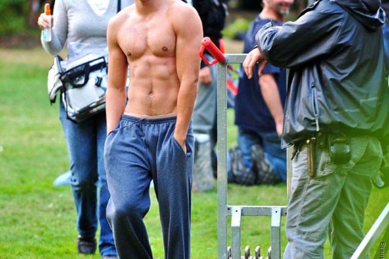Durante um intervalo de filmagens em Vancouver, o jovem galã decidiu tirar a camisa para desatar a correr atrás de gansos. Uma imagem rara do actor em